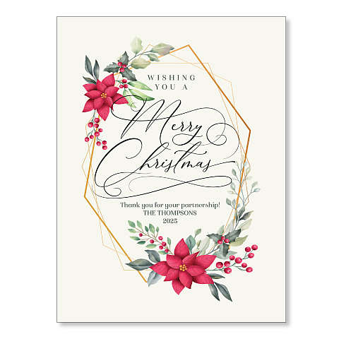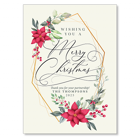 Golden Poinsettia Christmas Card Grande 6x8 Customize Online