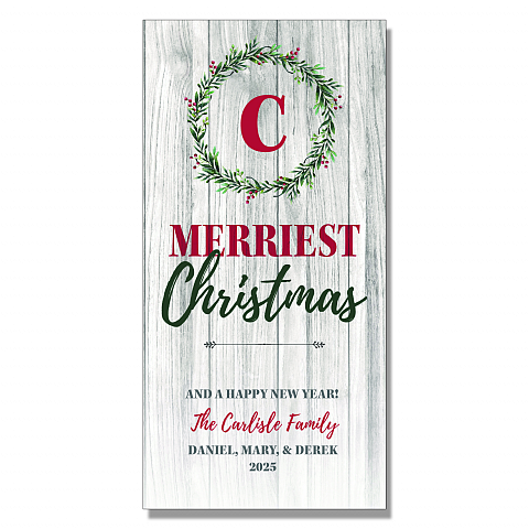 Wreathed Wishes Christmas Card 4x8 Customize Online