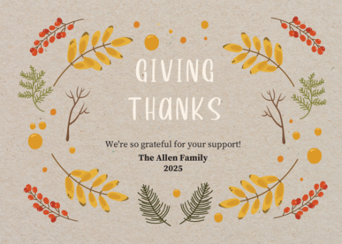 Share with your supporters how thankful you are for them by sending one of Chalk Line's 5" x 7" Seasonal Fall Cards.