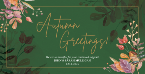 Share with your supporters how thankful you are for them by sending one of Chalk Line's 4" x 8" Seasonal Fall Cards.