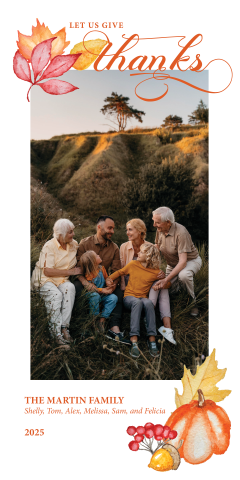 Share with your supporters how thankful you are for them by sending one of Chalk Line's 4" x 8" Seasonal Fall Cards.