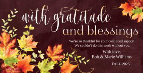 Share with your supporters how thankful you are for them by sending one of Chalk Line's 4" x 8" Seasonal Fall Cards.