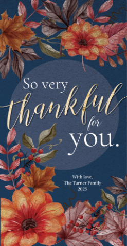 Share with your supporters how thankful you are for them by sending one of Chalk Line's 4" x 8" Seasonal Fall Cards.
