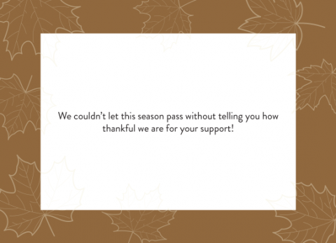 Share with your supporters how thankful you are for them by sending one of Chalk Line's 5" x 7" Seasonal Fall Cards.