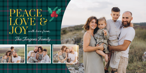 Peace, Love & Joy Christmas Card 4x8 Customize Online CC-PEACE4x8