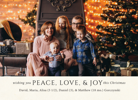 Our Christmas cards are available as 5x7 flat cards or 5x7 folded cards, printed in full color on 120lb cardstock.  White A7 envelopes are included when shipped or mailed. Chalk Line will mail your cards directly to your mailing list or ship them to you.