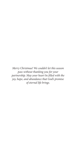 Share the wonder of the season with your supporters by sending one of Chalk Line's 4" x 8" Christmas photo cards.