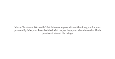 Share the wonder of the season with your supporters by sending one of Chalk Line's 4" x 8" Christmas photo cards.
