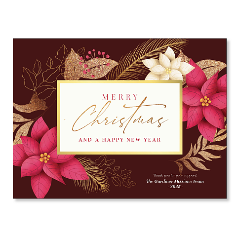 Golden Poinsettia Christmas Card 4x8 Customize Online