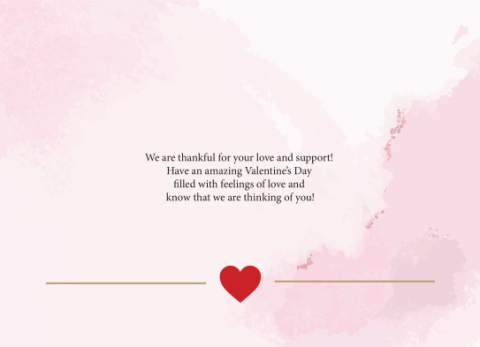 Tell your supporters how much you care for them by sending one of Chalk Line's 5" x 7" Valentine’s Day Cards.