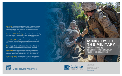 The Cadance Ministry Map Brochure is printed double-sided on legal-sized paper, landscape orientation (14 x 8.5 inches); folded in half to 7 x 8.5 inches; full bleed